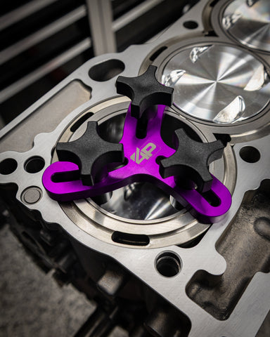 The 4P piston ring squaring tool is a quick and easy way to square your rings in the bore prior to setting end gaps. It is easily adjustable from 2.000” to 5.000” and will clear head studs. This places rings 1.000” below the deck to get past head bolt distortion.